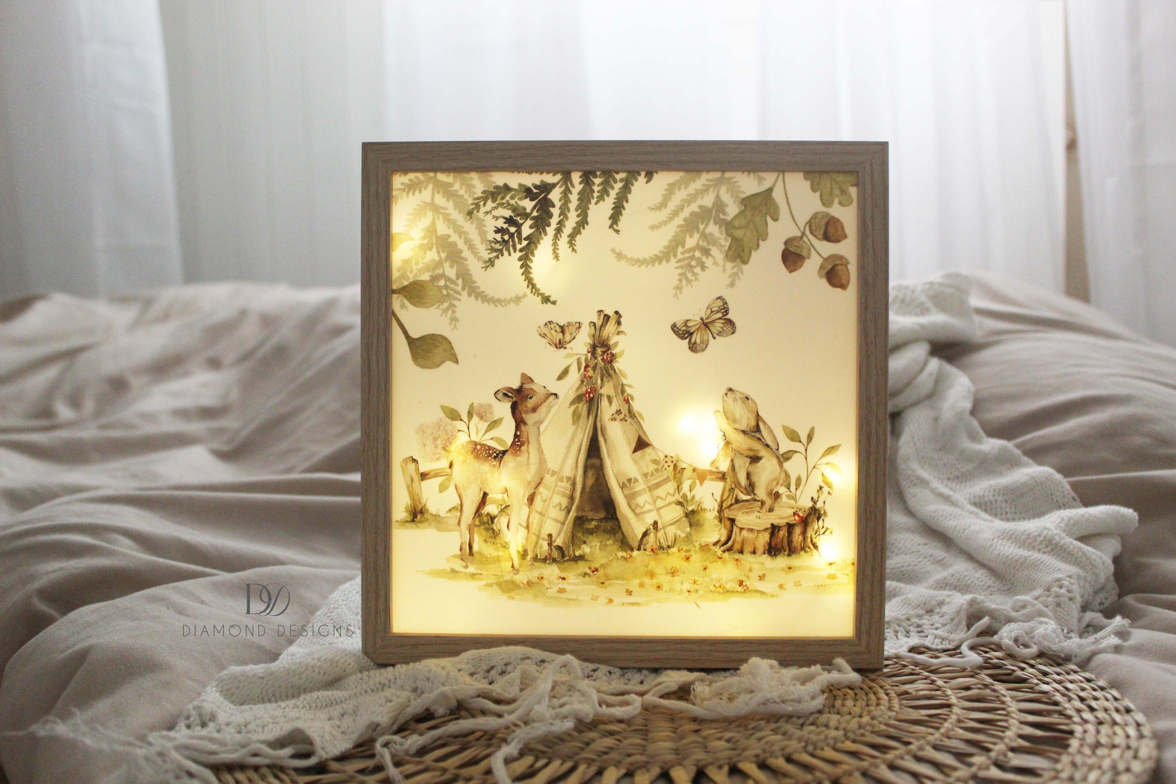 Durch das sanfte LED-Licht wird das Motiv besonders schön in Szene gesetzt und schafft eine warme, gemütliche Atmosphäre – perfekt für das Kinderzimmer, Wohnzimmer oder als besondere Erinnerung an einen wichtigen Moment im Leben.